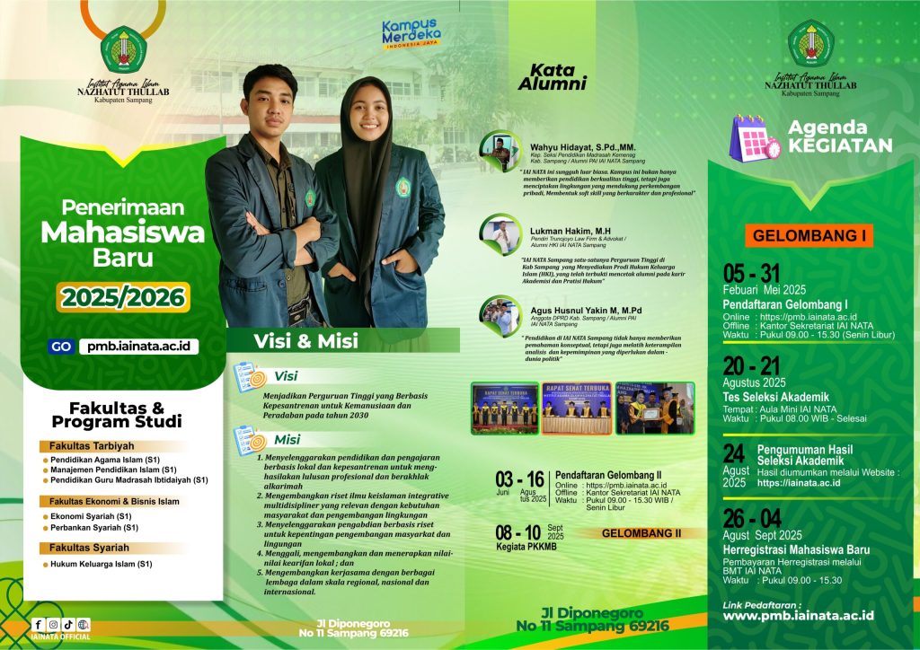 Bergabunglah bersama kami untuk menempuh pendidikan tinggi yang berlandaskan nilai-nilai keislaman, keilmuan, dan keindonesiaan. Mari wujudkan masa depan gemilang bersama FAKULTAS TARBIYAH IAI NATA Sampang.